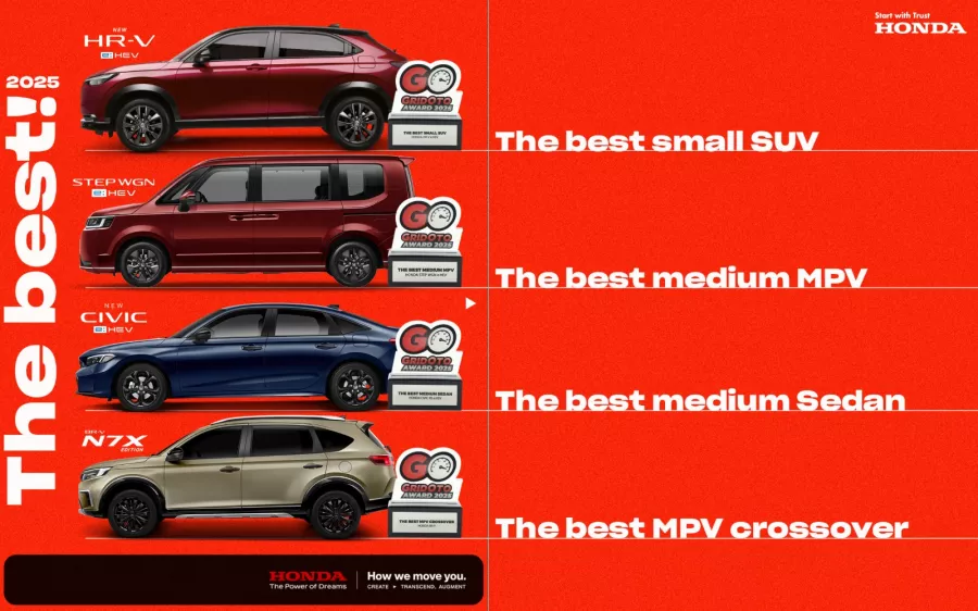 Jakarta, 12 November 2025 – Empat model mobil Honda meraih penghargaan bergengsi dalam ajang GridOto Award 2025 yang digelar di Jakarta pada Selasa, 11 November 2025. Keempat penghargaan ini masing-masing diraih oleh Honda BR-V, serta tiga model hybrid yaitu Honda Civic RS e:HEV, Honda HR-V e:HEV, dan Honda Step WGN e:HEV. Pencapaian ini menjadi bukti nyata kepercayaan konsumen Indonesia terhadap kualitas produk Honda yang terus relevan di berbagai segmen, sekaligus menegaskan komitmen Honda dalam menghadirkan kendaraan sporty, advance, dan reliable bagi keluarga Indonesia.